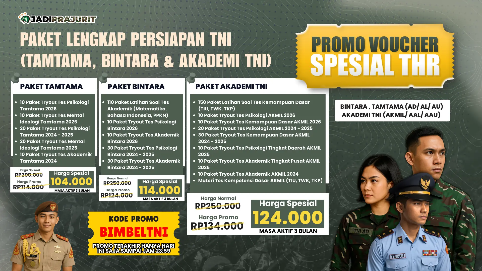 - Gunakan Kode Promo: Masukkan kode “BIMBELTNI” untuk mendapat diskon spesial sesuai poster promo