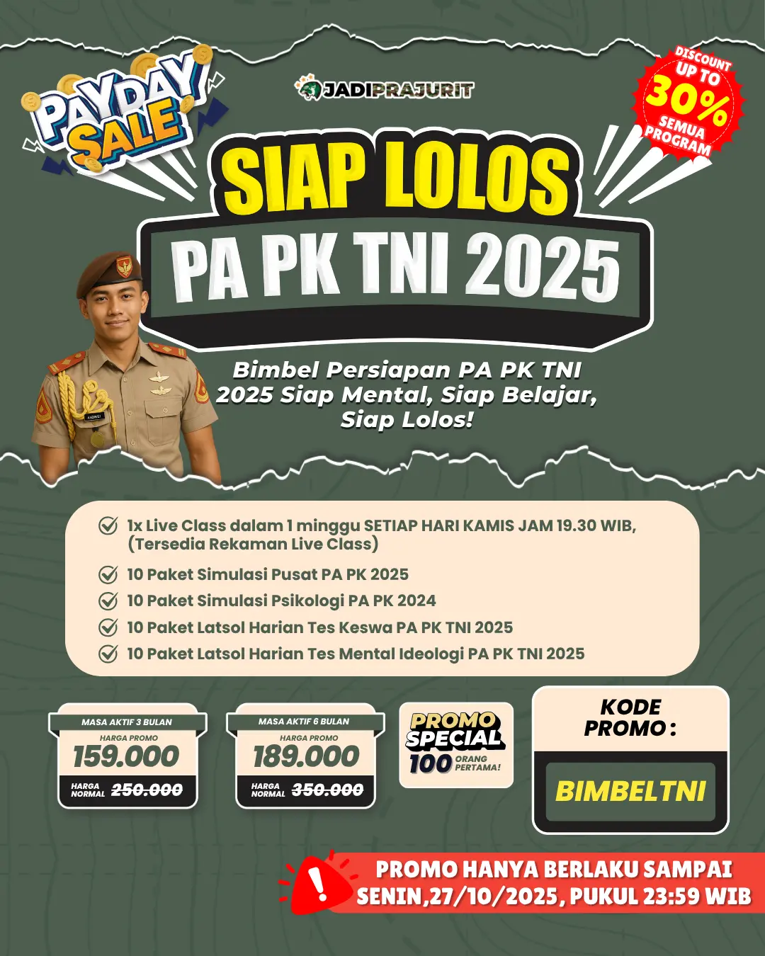 - Gunakan Kode Promo: Masukkan kode “BIMBELTNI” untuk mendapat diskon spesial sesuai poster promo